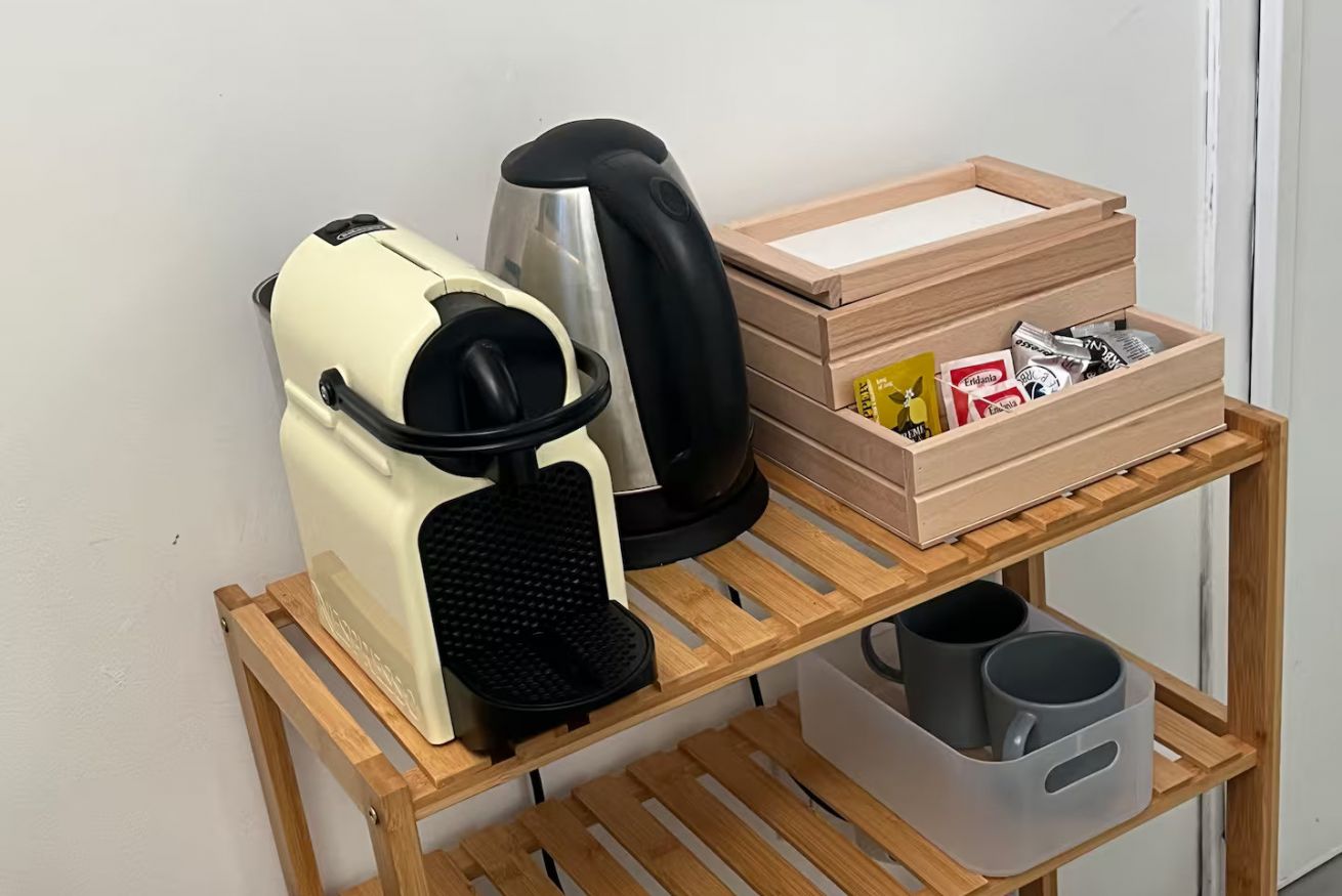 (No kitchen, only fridge and coffee setup)