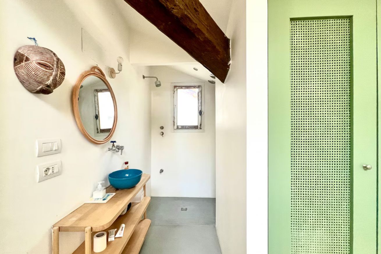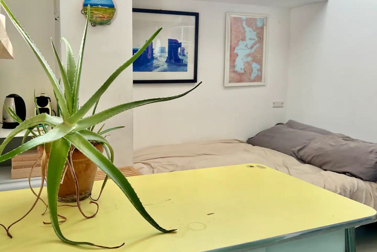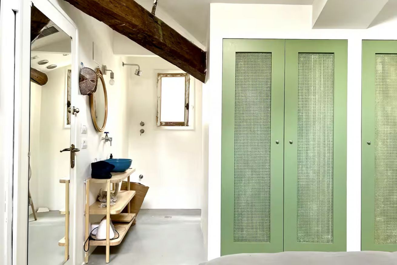 The shower and sink area are open-plan, so the studio is not ideal for two guests unless they are very comfortable with each other.