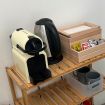 The room features a mini fridge, Nespresso machine, and kettle for tea and coffee.