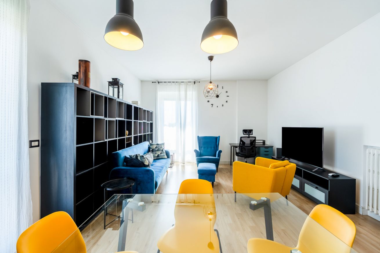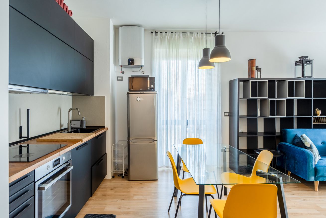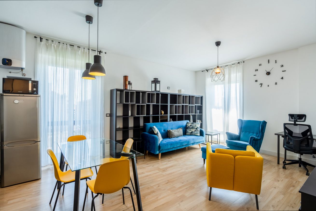 Spacious and functional, it offers everything needed for both short and long stays: a fully equipped kitchen, dining area, living room with sofa, and a comfortable workspace.