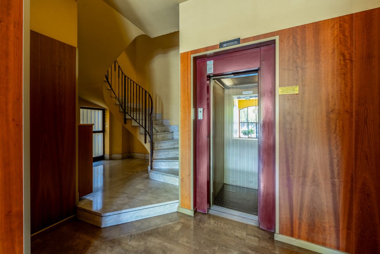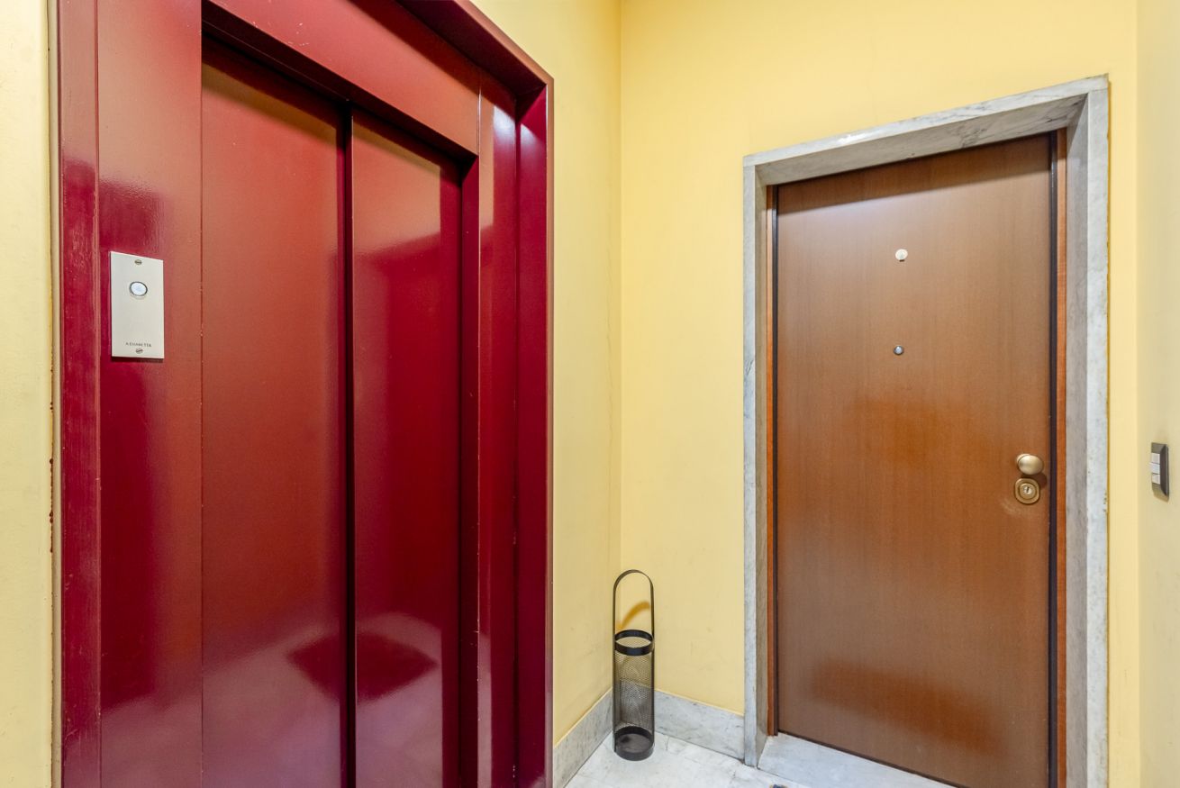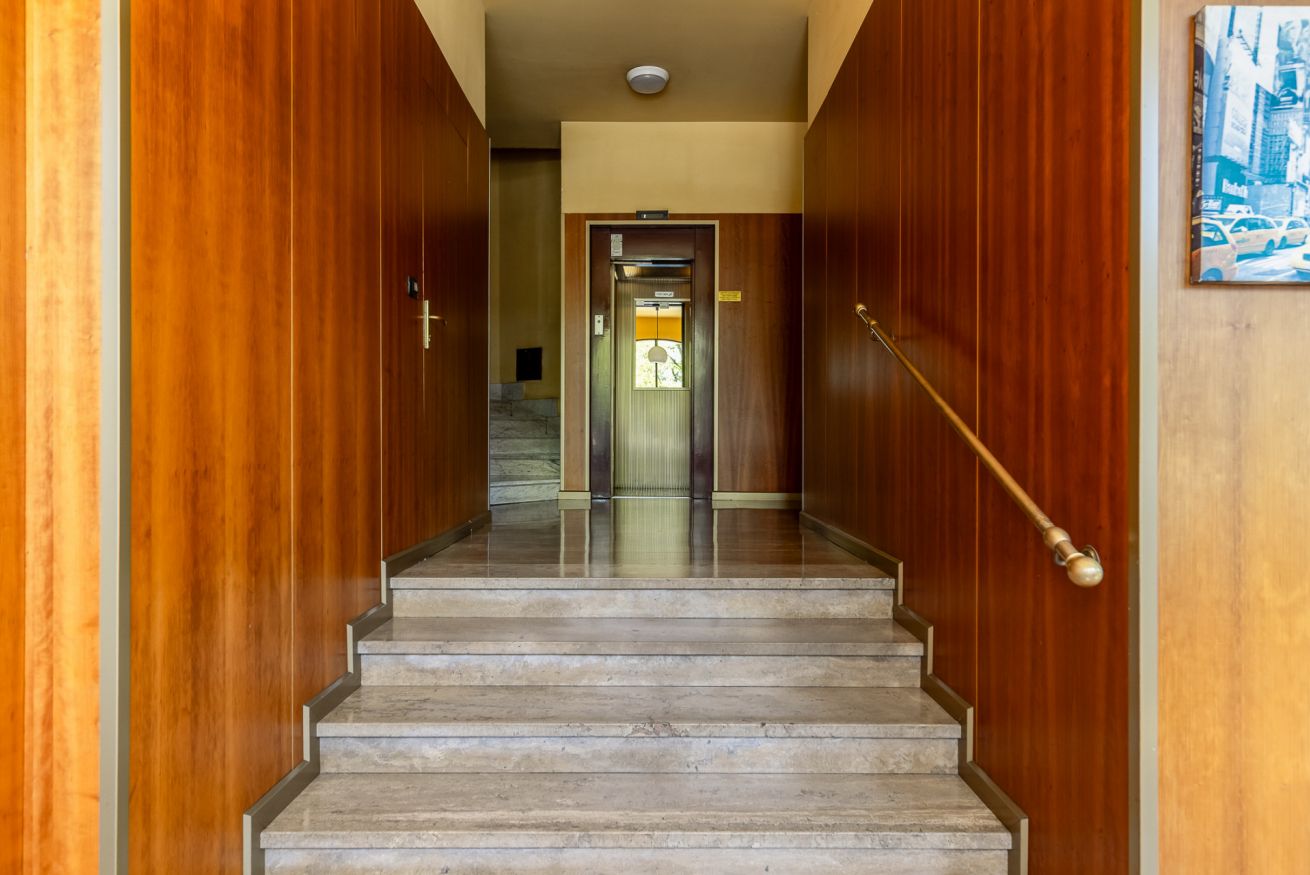 Located in a building with an elevator and surrounded by greenery, it enjoys an open view and plenty of natural light throughout the day.